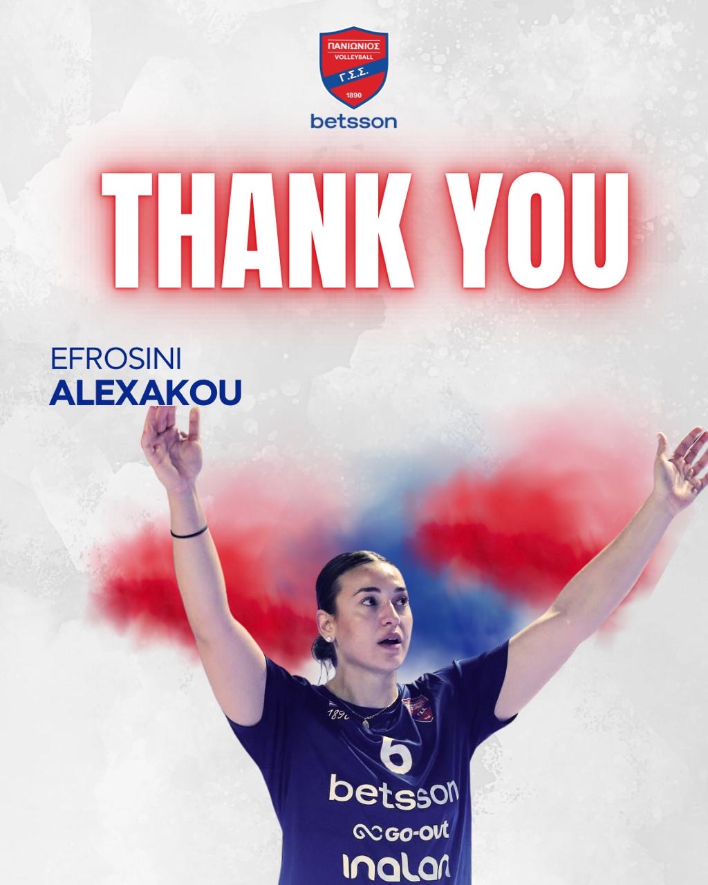 Η διοίκηση του τμήματος βόλεϊ του Πανιωνίου ανακοινώνει τη λύση της συνεργασίας της με την Ευφροσύνη Αλεξάκου.