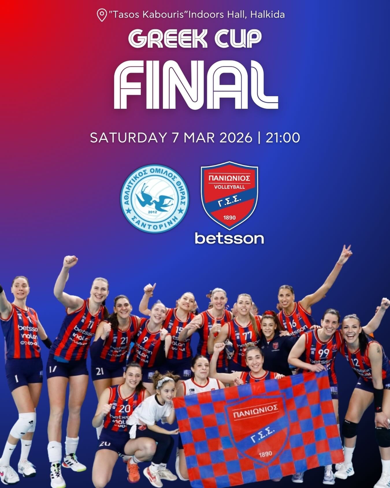 Ο Πανιώνιος Betsson είναι έτοιμος να αντιμετωπίσει τον ΑΟ Θήρας στο Κλειστό της Χαλκίδας με στόχο την κατάκτηση του Κυπέλλου Ελλάδας.