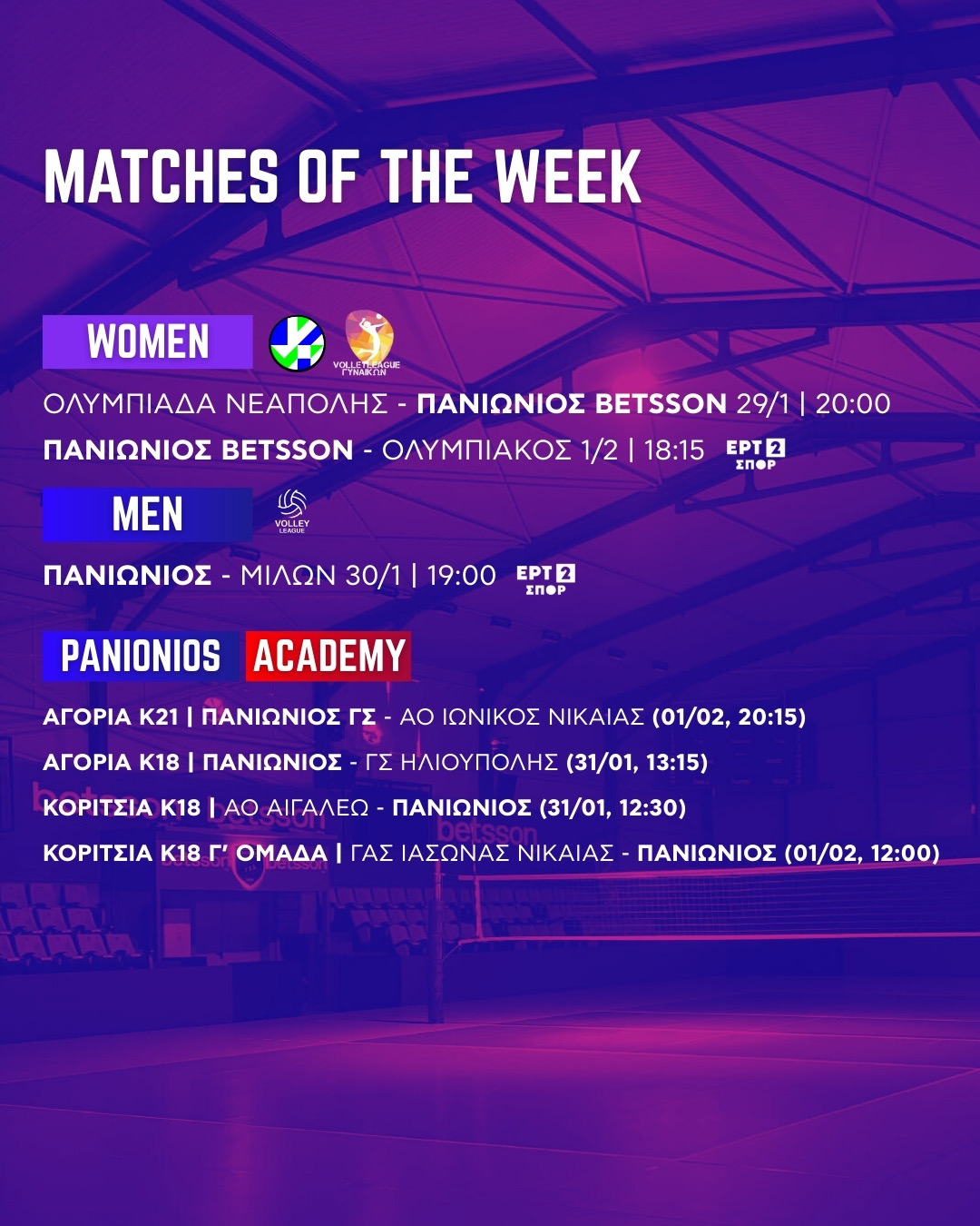 Οι παίκτες του Αργύρη Ψάρρα επιστρέφουν στα εντός έδρας παιχνίδια, όπου θα υποδεχθούν στο «Ανδρέας Βαρίκας» τον Μίλωνα την Παρασκευή (30/01, 19:00) για την 13η αγωνιστική της Volley League. Ο Πανιώνιος θέλει να γυρίσει στα θετικά αποτελέσματα και με «όπλο» την έδρα και τον κόσμο του θα επιδιώξει να το καταφέρει.